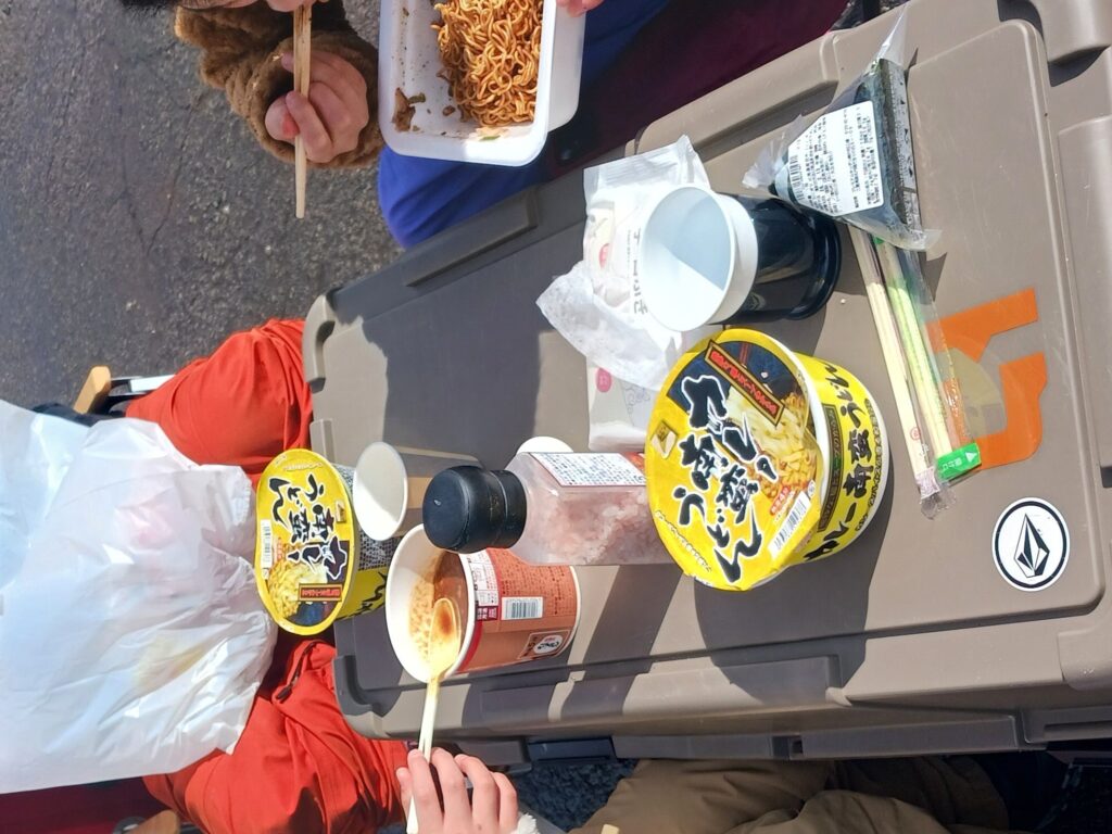 寒くなかったので、車に戻り駐車場でお湯を沸かしてカップ麺を食べて腹ごしらえ♪