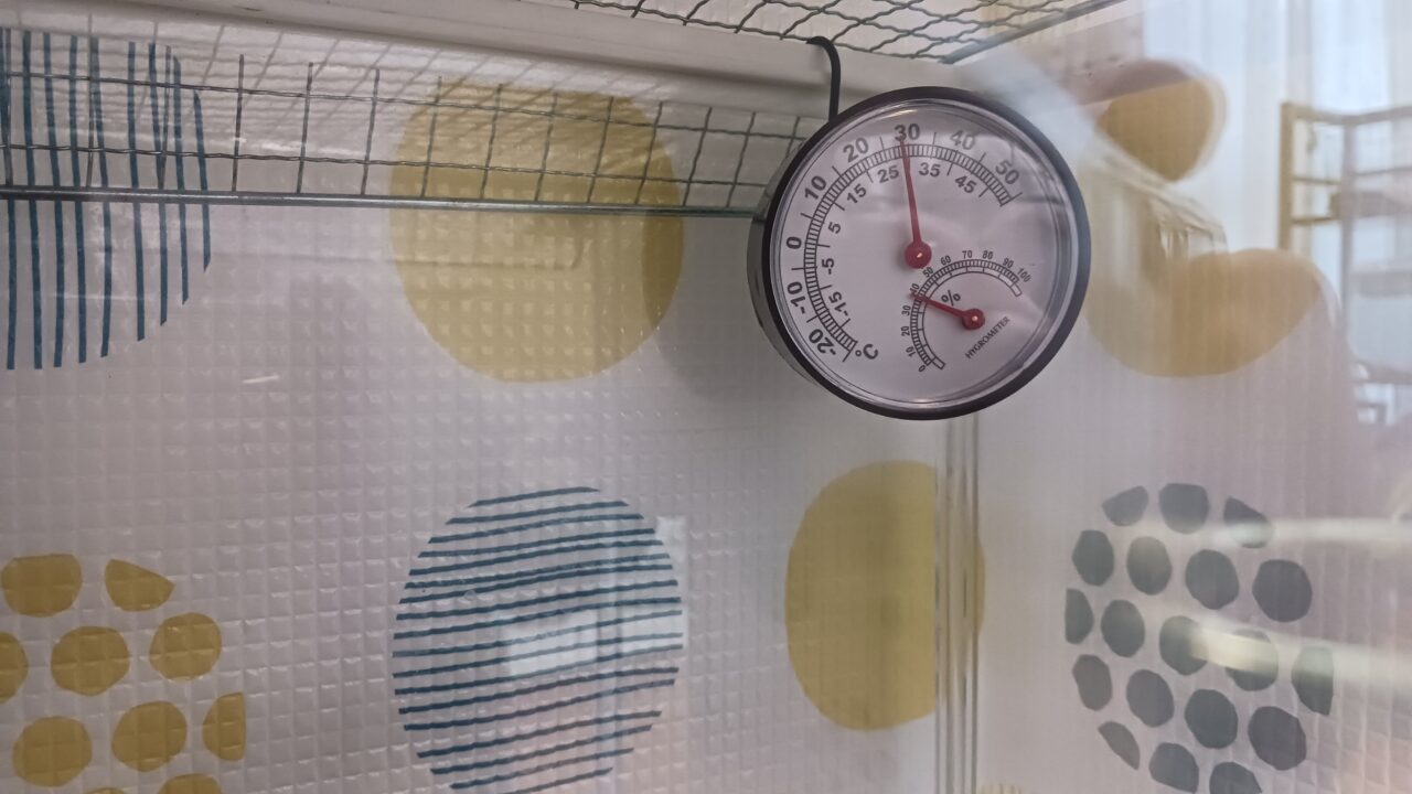 ケージのガラスの内側にシュッと霧吹きでかけてくれて湿度を上げてくれることもあるよ。
