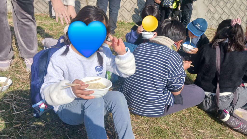 うどんやホットドッグ、チュロス、シュウマイなども100〜150円で食べられて、みんなで外で食べて美味しかったみたい!