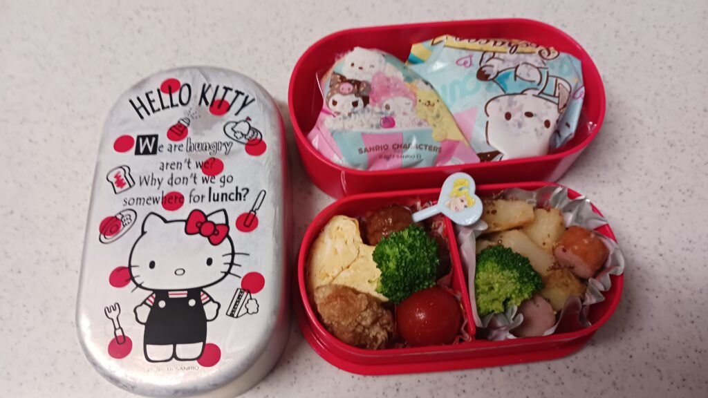 母ちゃんからキャラ弁は幼稚園までって言われてるから普通のお弁当やけど、めっちゃ美味しかったー!全部食べたよー!って喜んでたよ〜