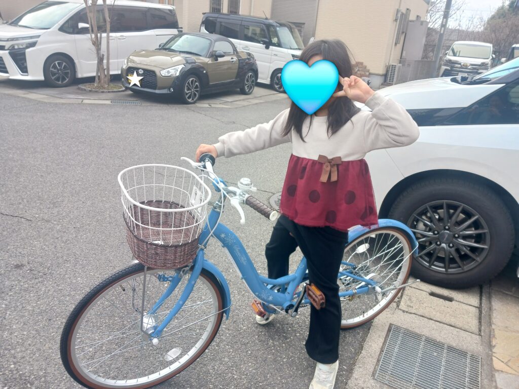 出来れば、小学校高学年までは乗って欲しいなぁ~という親の希望もあり(笑)、シンプルなモデルの方が後々のことを考えると良いのではないかな~と思って言うのですが姉ちゃんは、THE女子♡って感じのやつをご所望。。。