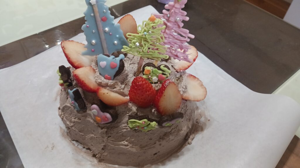 ケーキは昨日のうちから準備して飾りつけは食べる前に姉ちゃんがしたよ~♡
