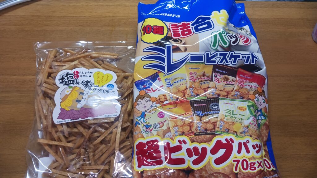 旬の文旦やミレーや姉ちゃんの大好物の芋けんぴを持ってきてくれました。